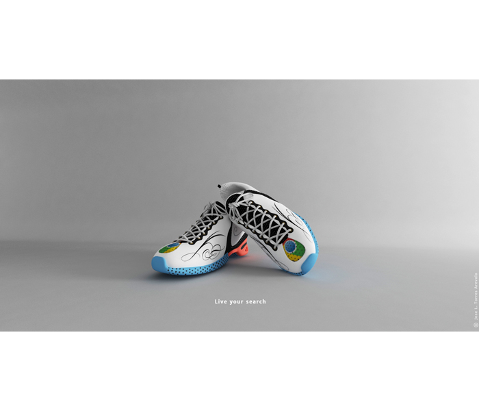 Deportivas realizadas en 3D mediante 3Ds Max para la página web liveyoursearch.com con la temática de Google Chrome.