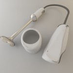 El modelo 3D fue realizado mediante 3Ds Max y renderizado con V-Ray. Además se texturizaron algunas partes, como el brazo extensible de plástico y la varilla en acero inoxidable.