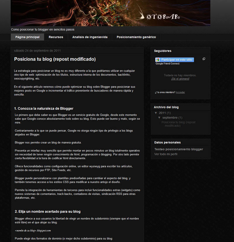 El proyecto de diseño web Posiciona tu Blogger surgió con la intención de ofrecer a los usuarios información útil sobre como posicionar sus blogs realizados con Blogspot.
